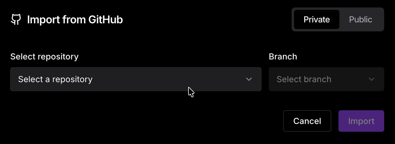 - Import stays linked — importing doesn't create a detached copy. Your project remains connected to the GitHub repository, and you can push and pull changes as you would with any linked project