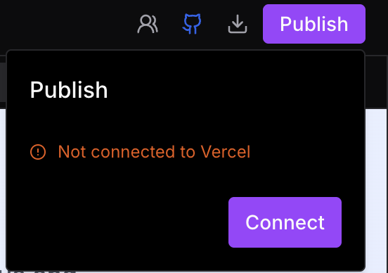 If you haven't linked your Vercel account yet, the Publish panel shows the disconnected state.